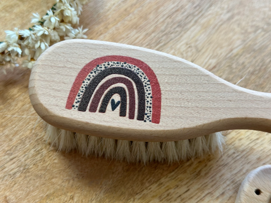 Haarbürste Babybürste Holz Regenbogen Boho und personalisiert mit Namen (Motiv 197 boho)