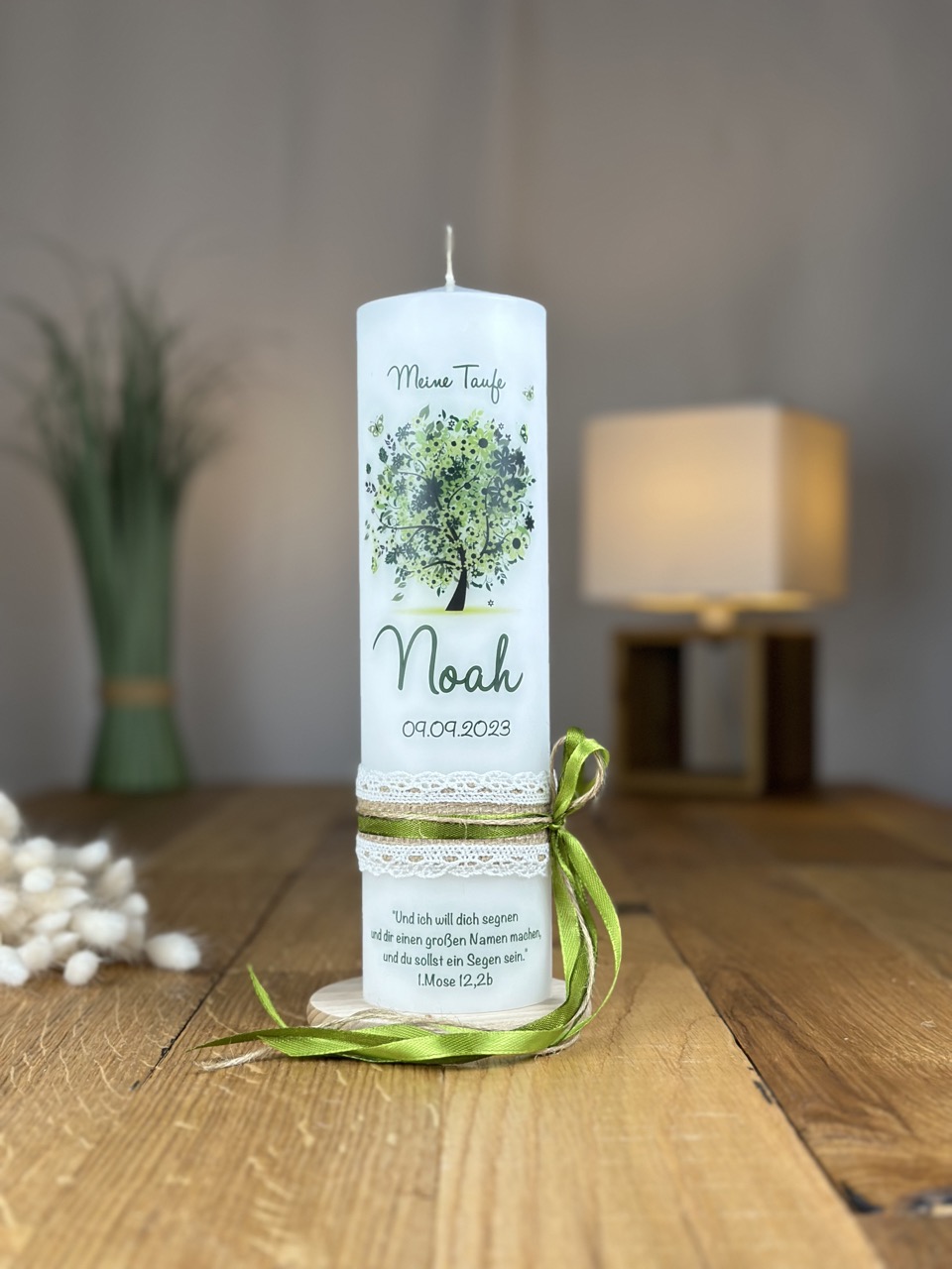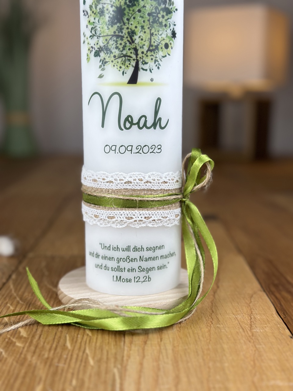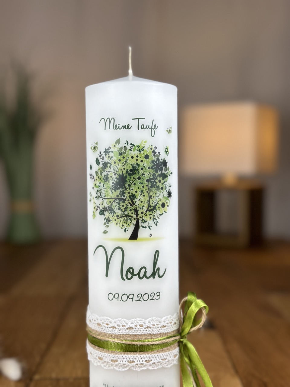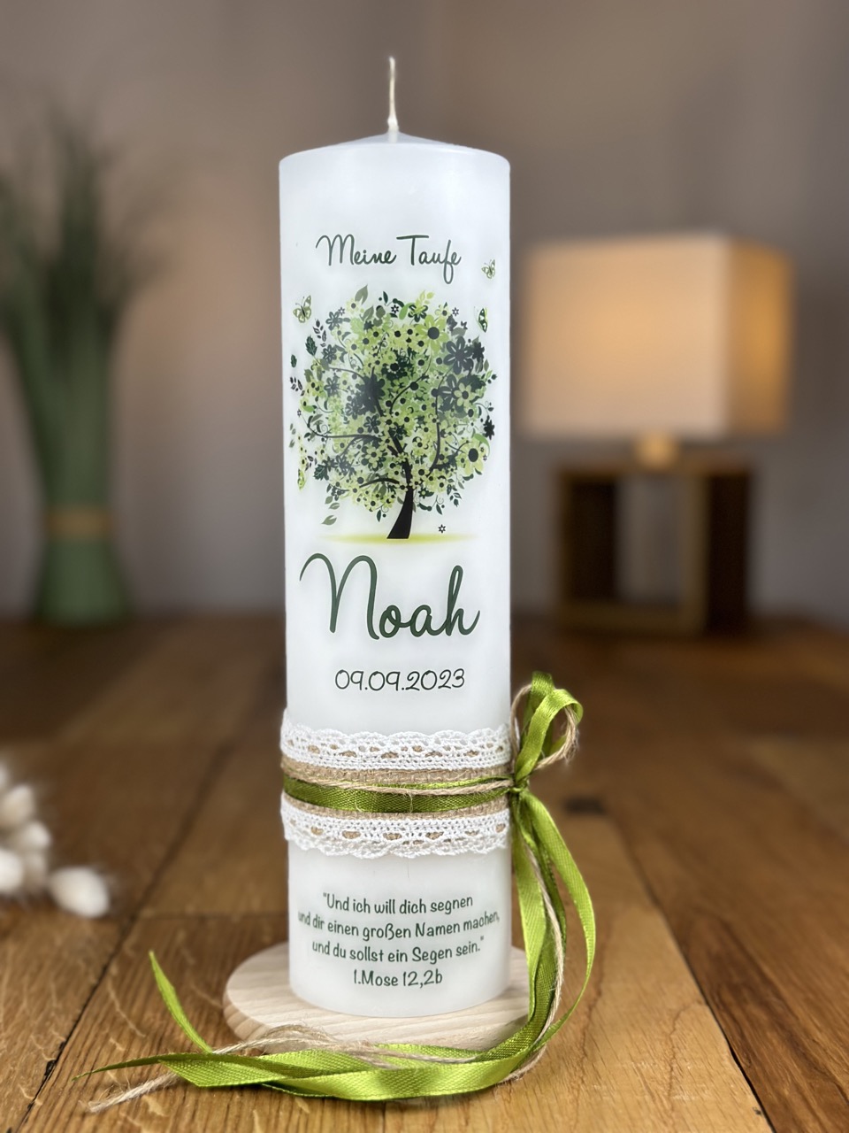 ist eine wunderschöne und einzigartige Kerze, die perfekt für die Taufe für Jungs als auch Mädchen geeignet ist. Mit ihrem zarten Grüntöne strahlt diese Kerze eine liebevolle und sanfte Atmosphäre aus.