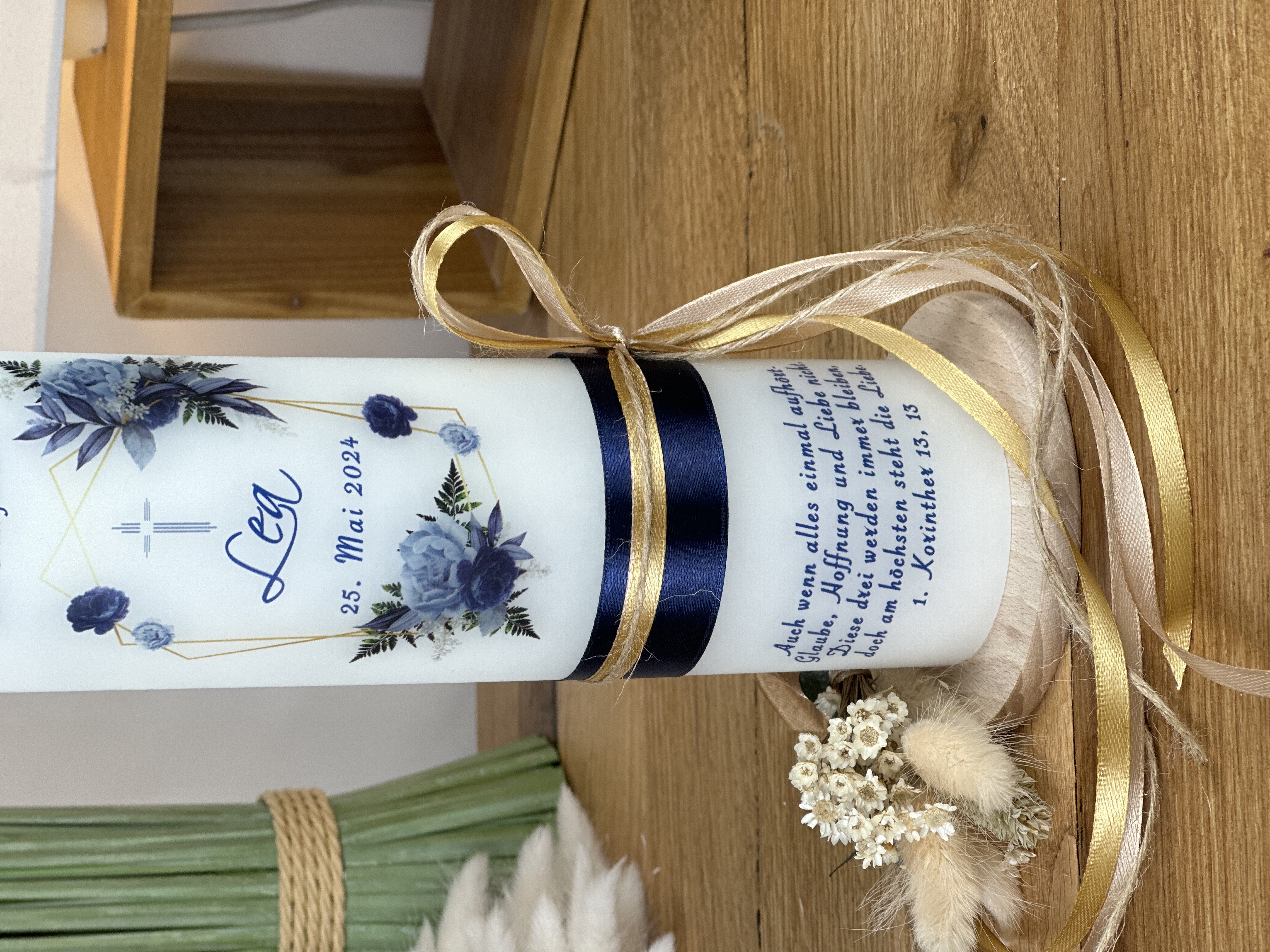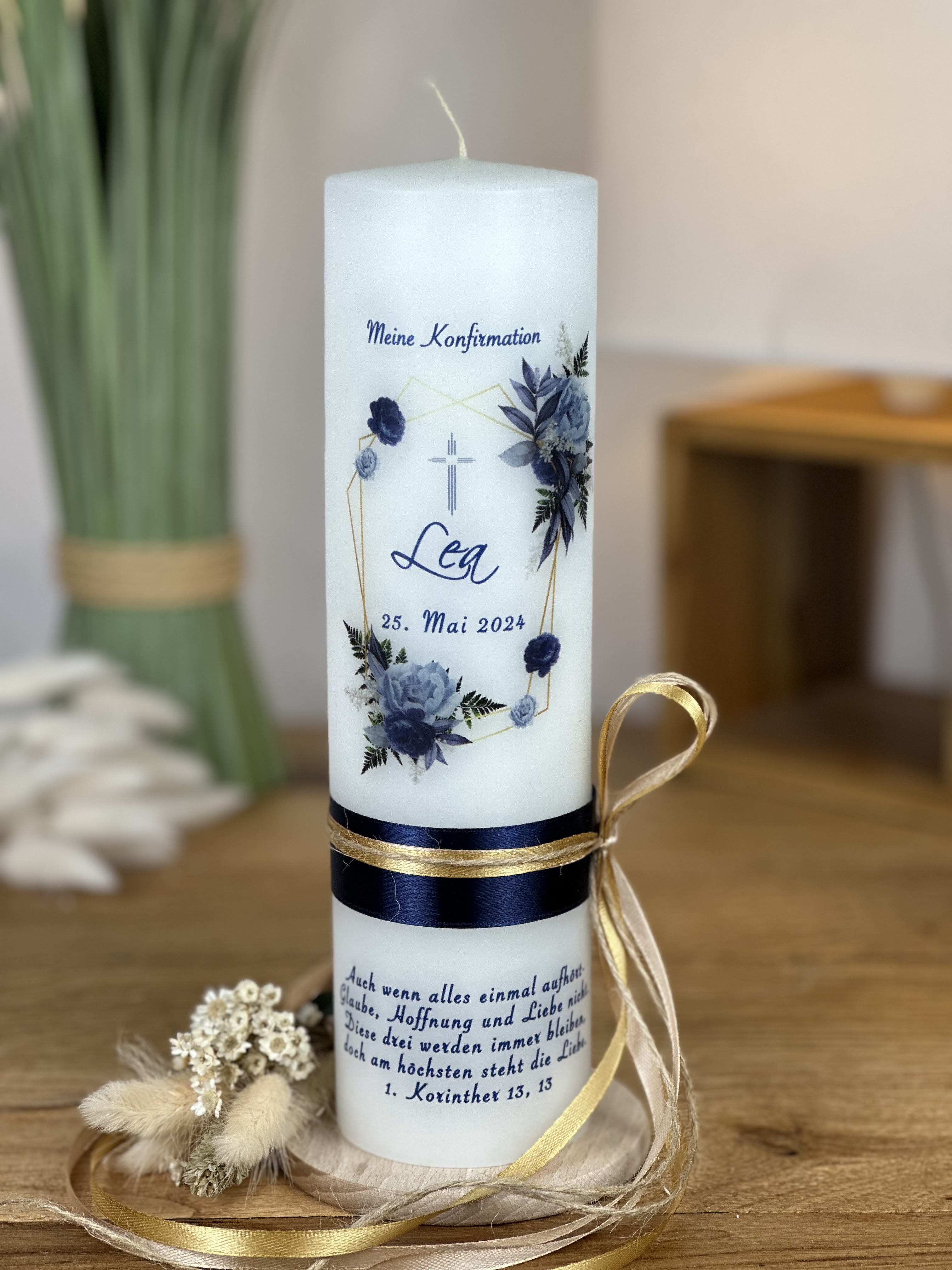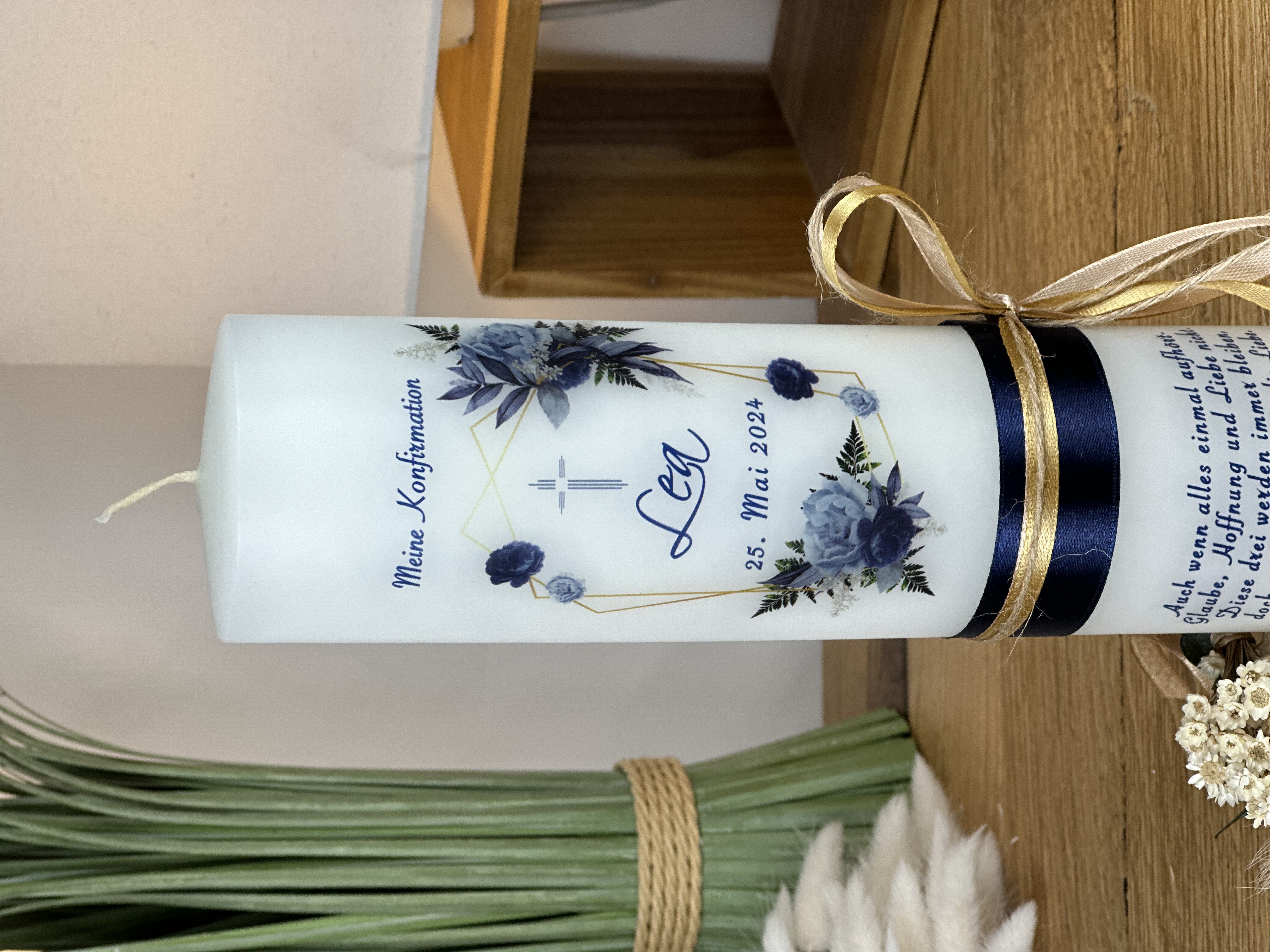 Diese Kerze ist nicht nur ein wunderschönes Dekorationsstück, sondern auch ein symbolisches Geschenk. Sie kann während der Feier angezündet werden und symbolisiert den Weg in ein neues Leben.