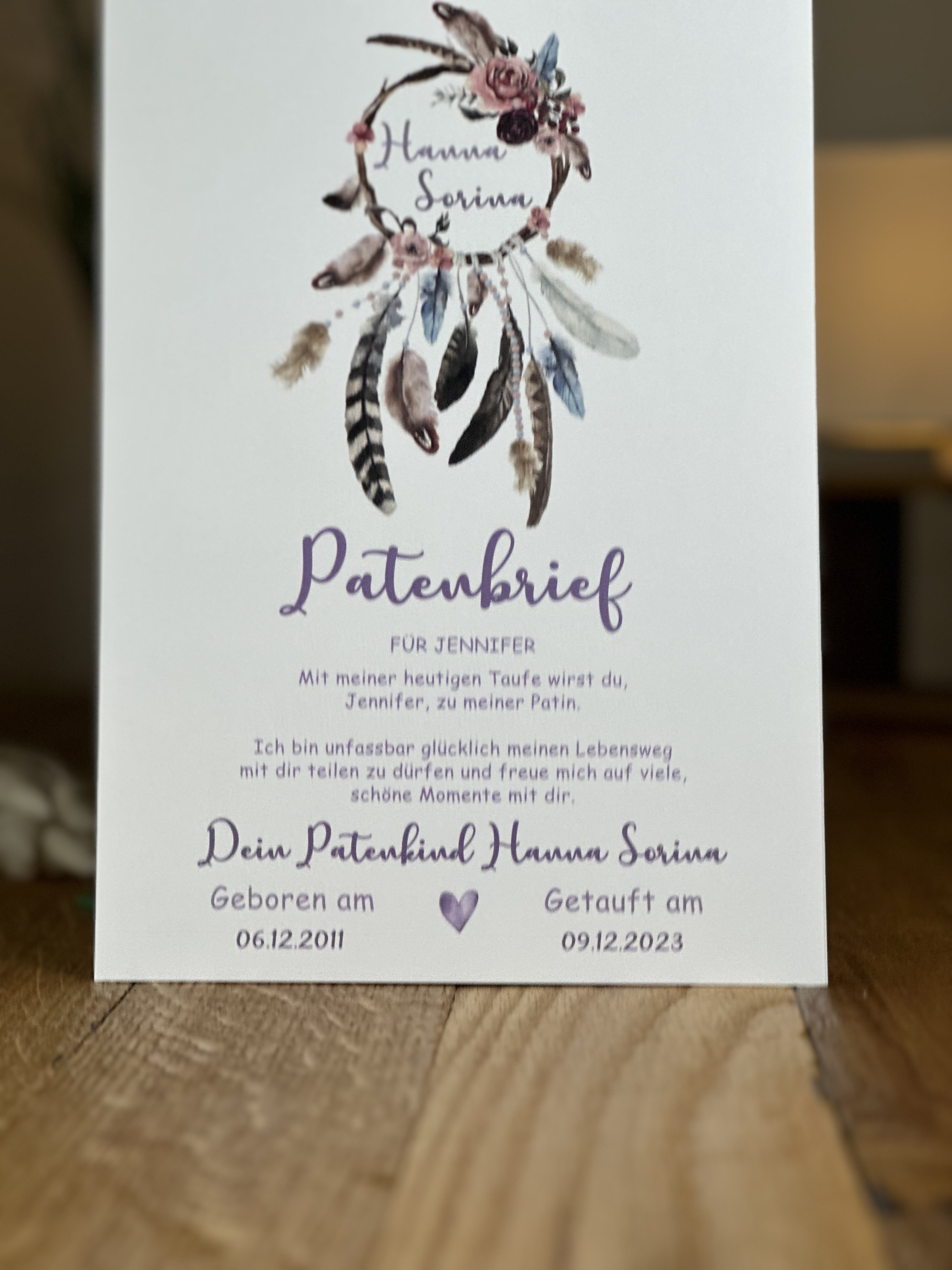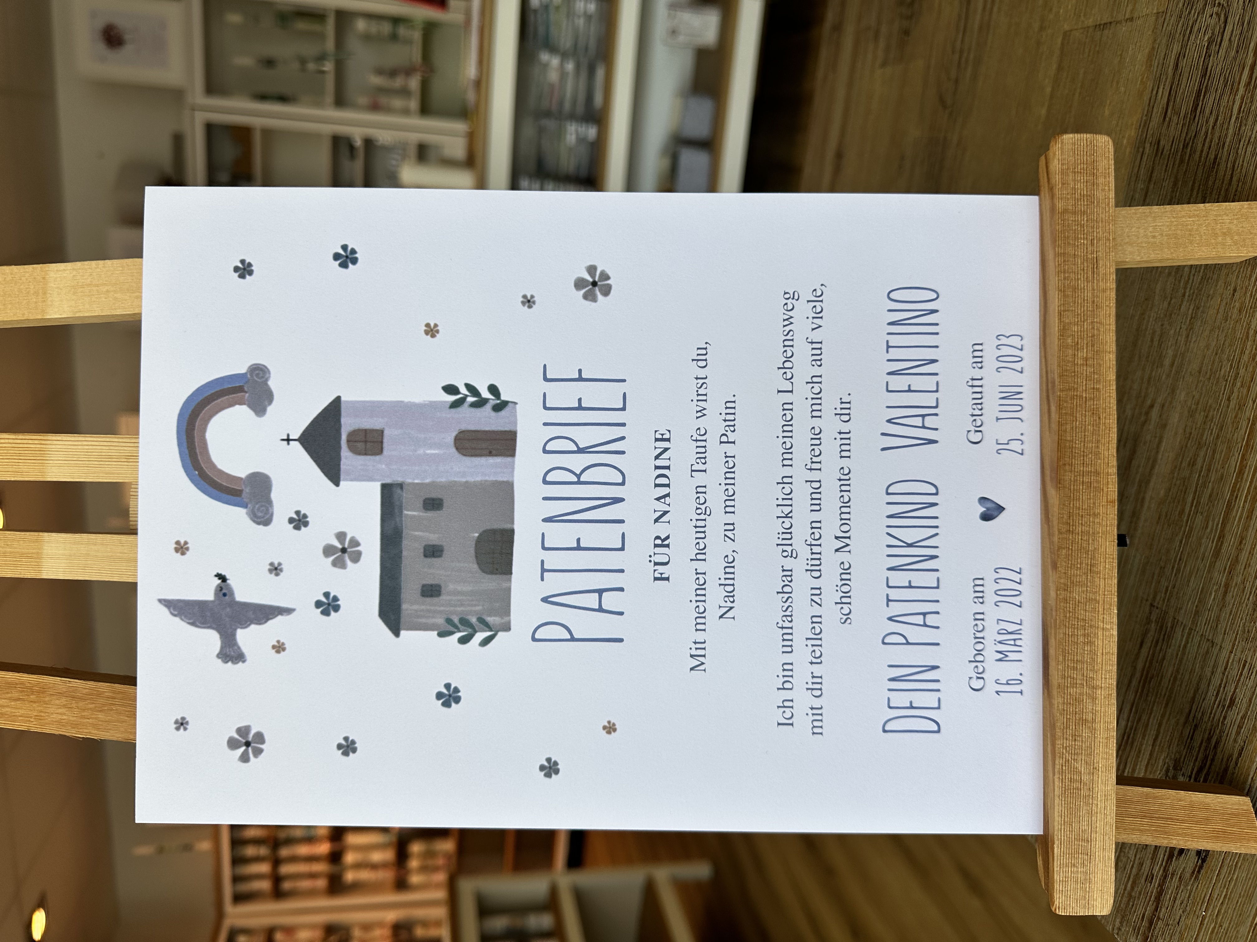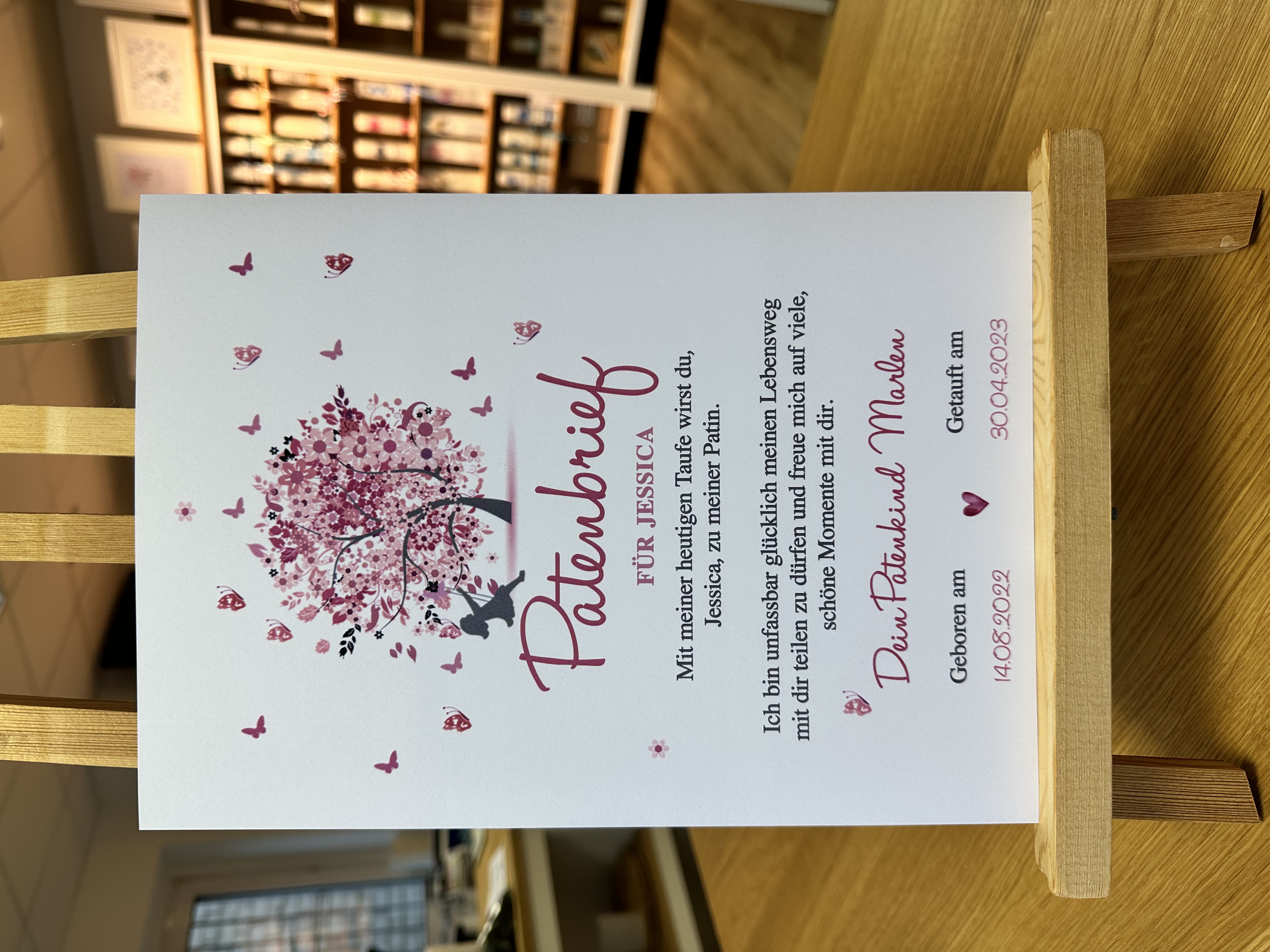 Dieser Patenbrief im DIN A4 Format 20x30 cm ist eine wunderschöne Erinnerung