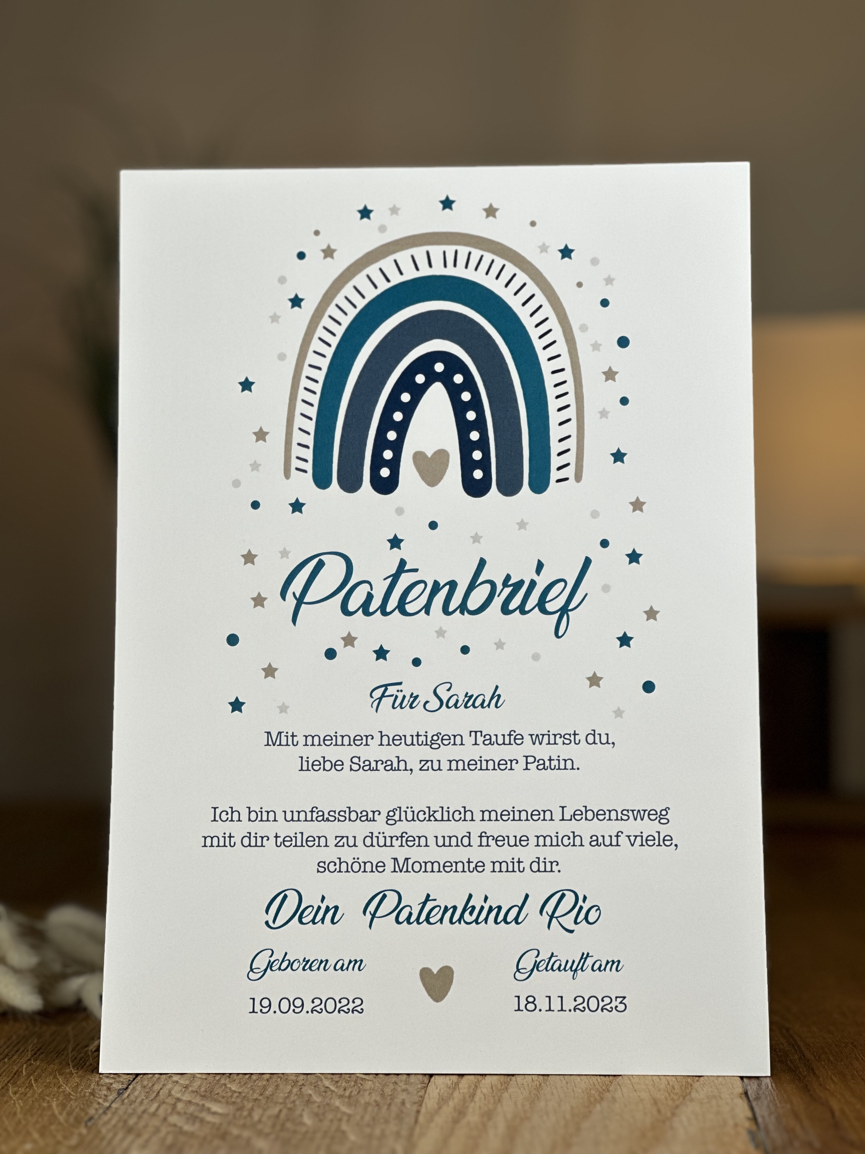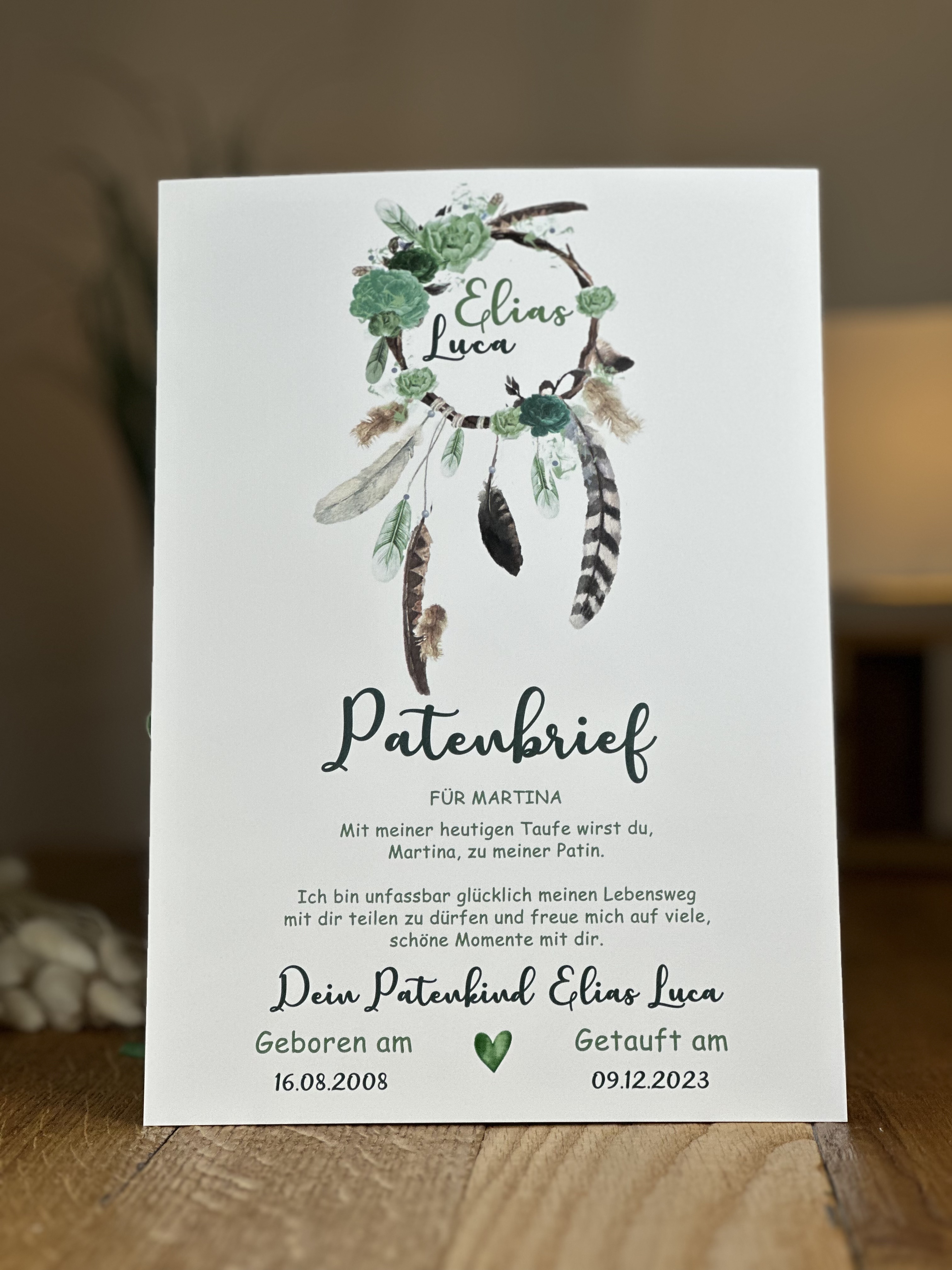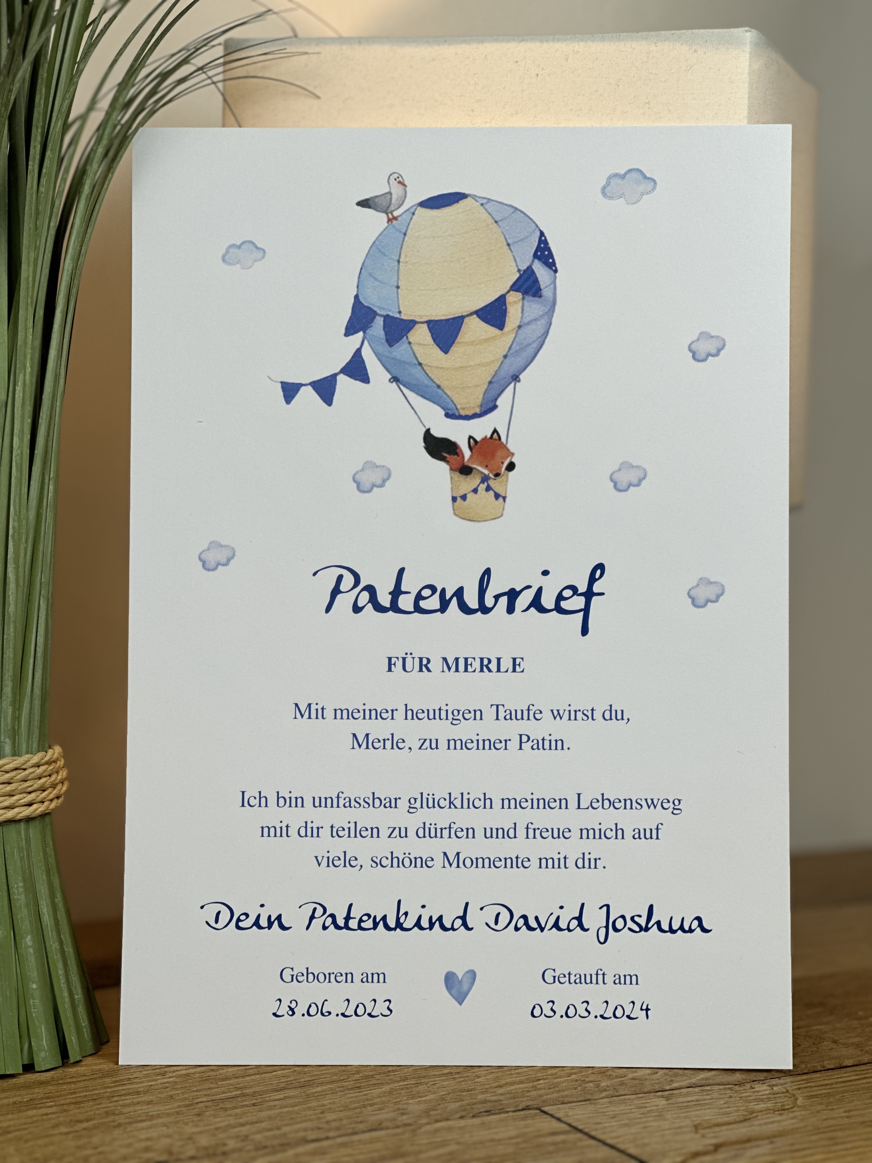 Dieser Patenbrief im DIN A4 Format 20x30 cm ist eine wunderschöne Erinnerung