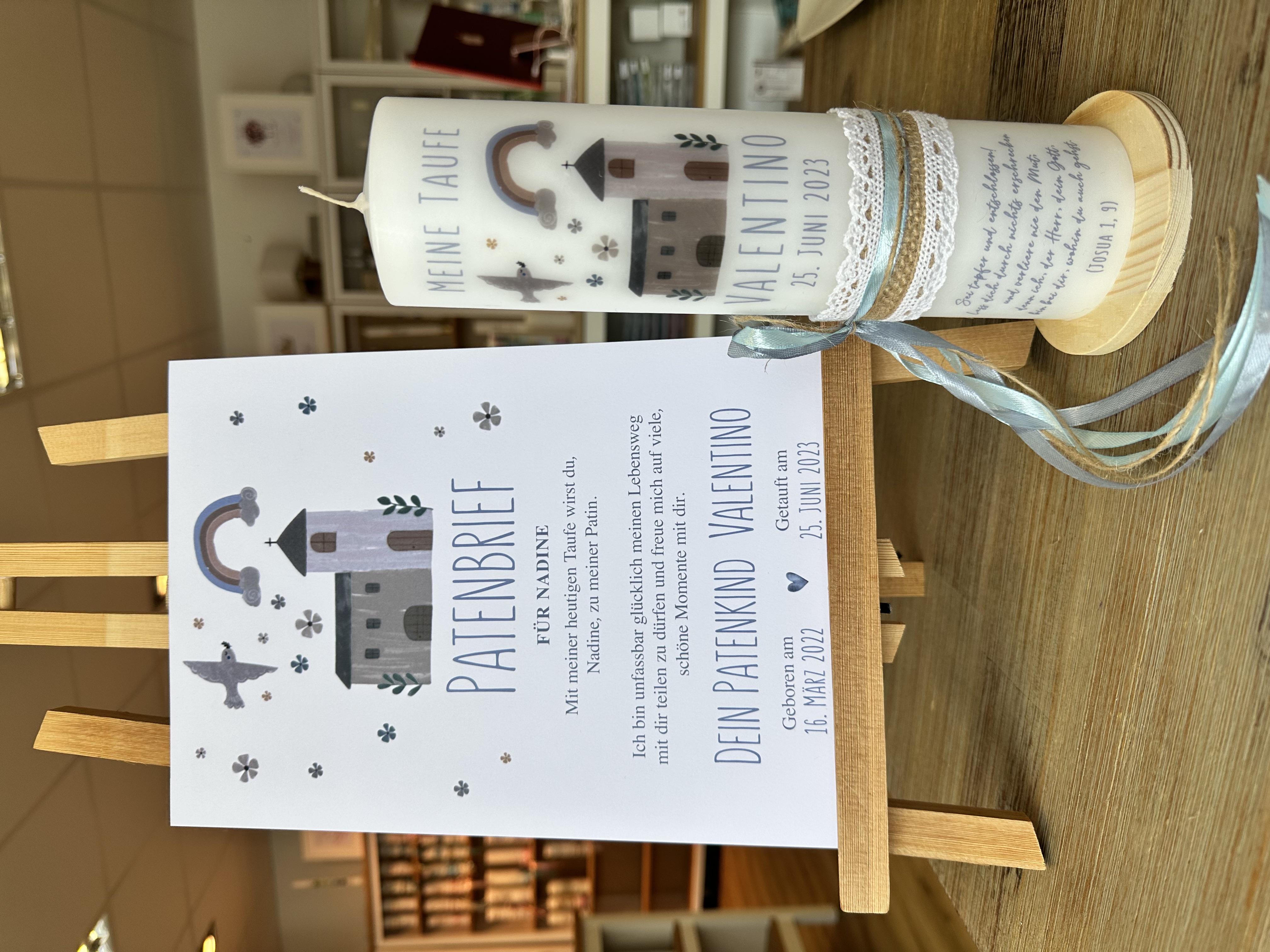 an die Taufe und ein besonderes Geschenk an die Taufpatin oder Taufpaten.